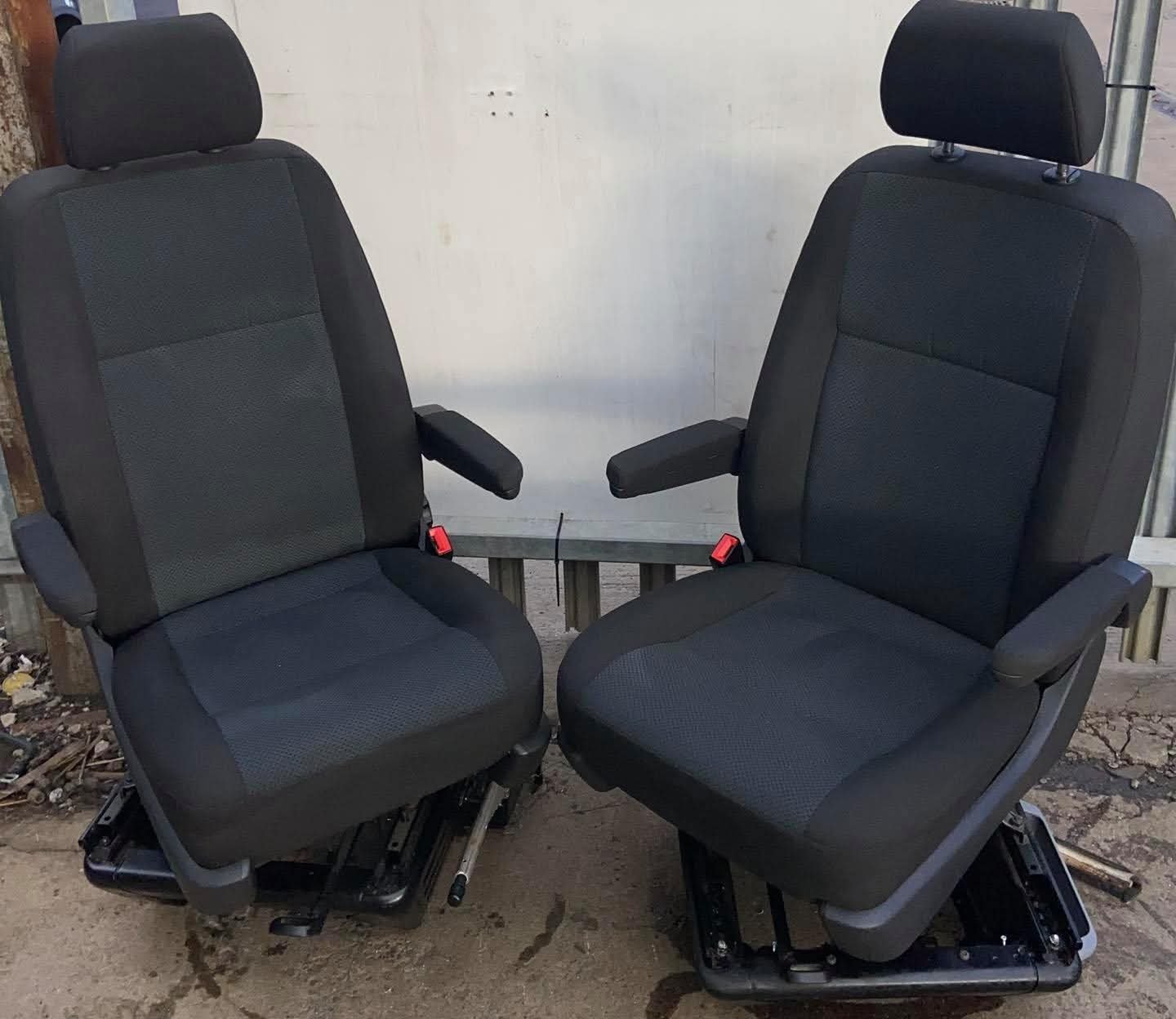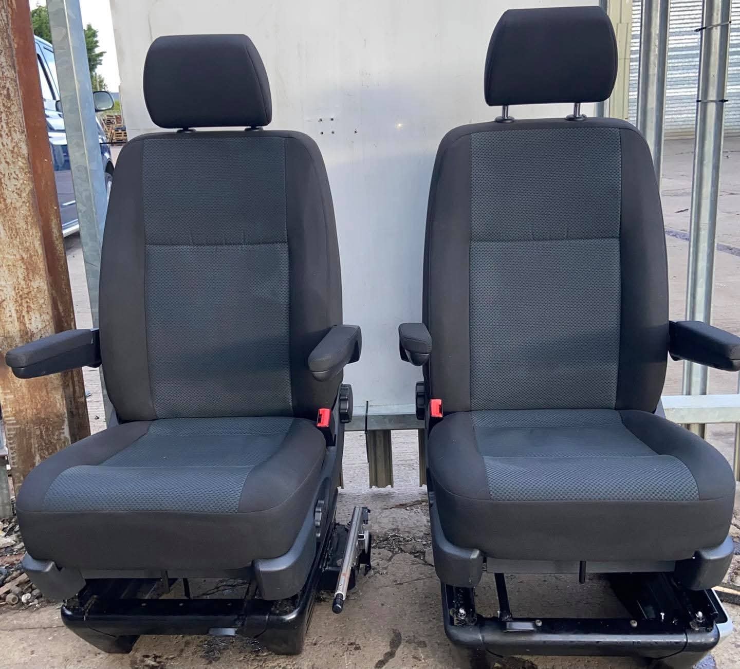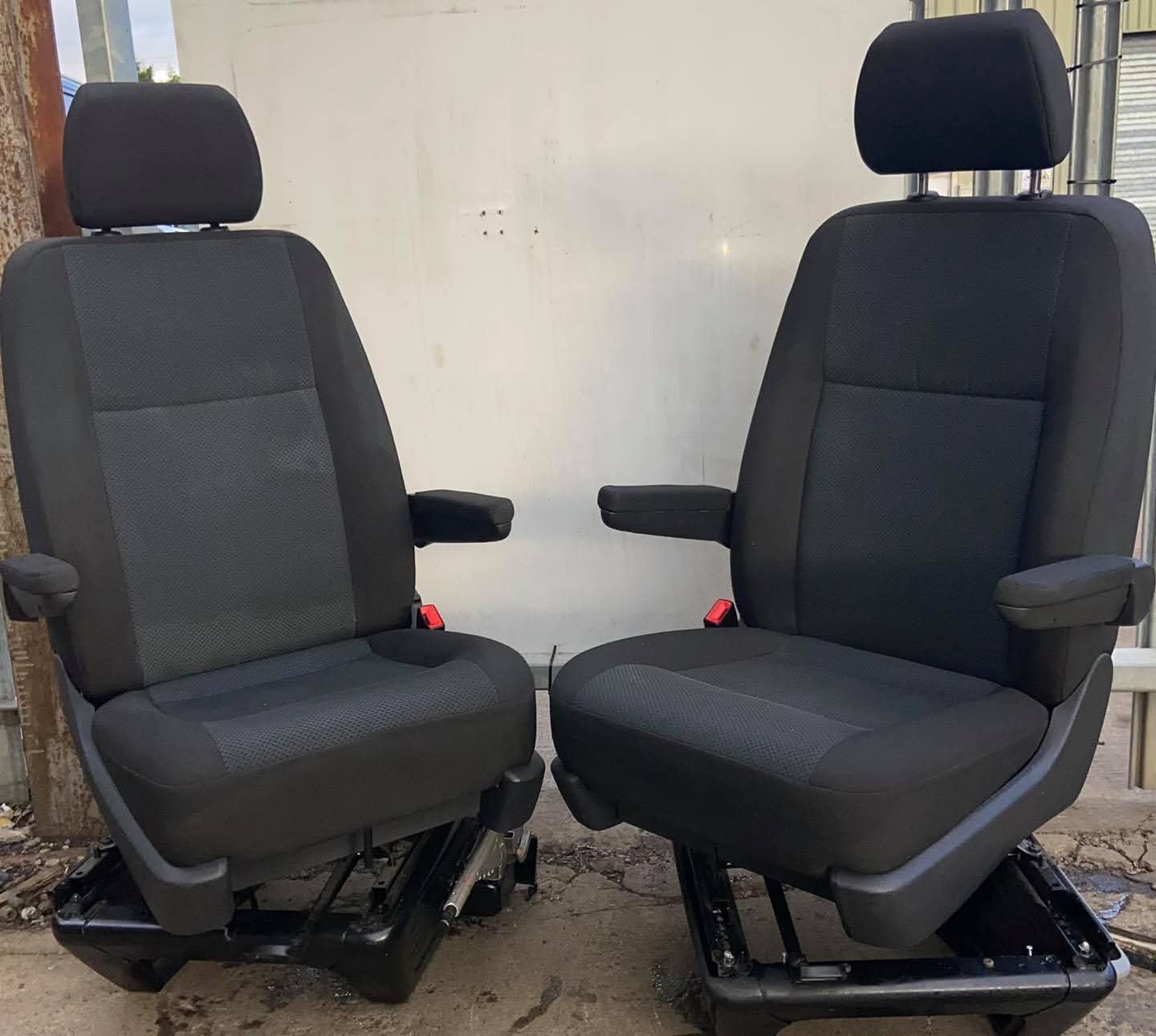 VW T5,T5.1,T6,T6 TRANSPORTER Drivers & Passenger single captain seats both on swivel bases. Both seats in T6 Simora pattern Seats in good clean condition