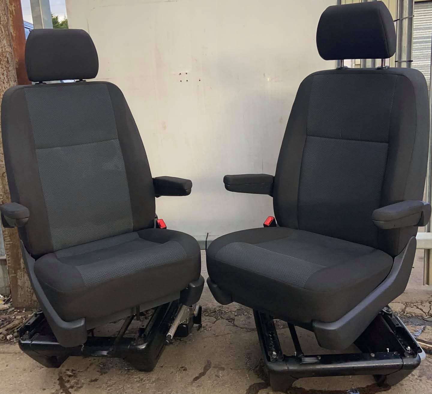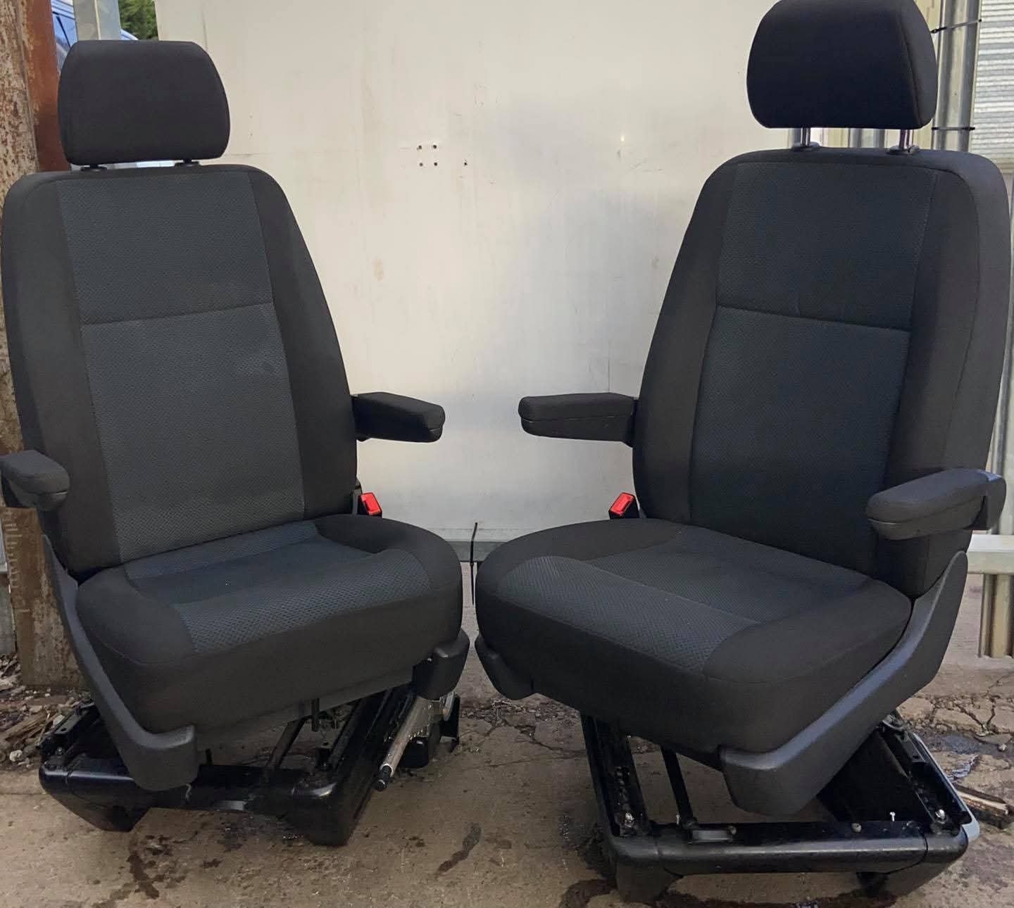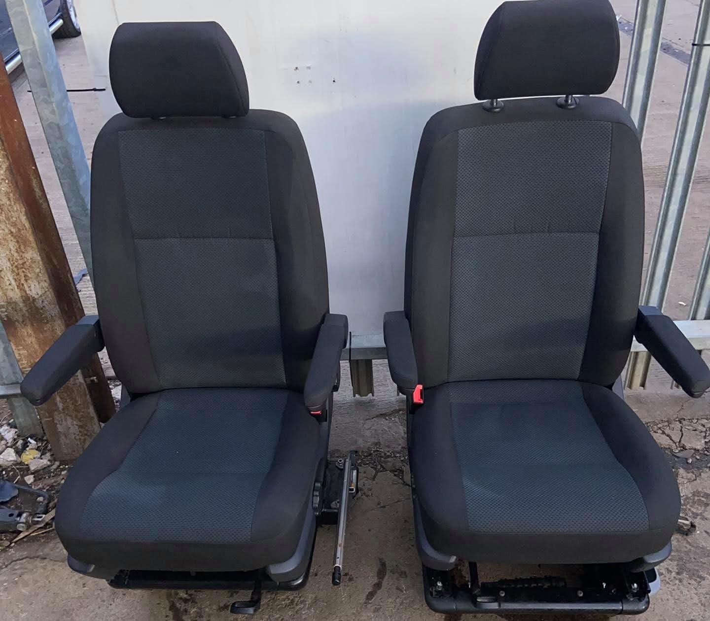 VW T5,T5.1,T6,T6 TRANSPORTER Drivers & Passenger single captain seats both on swivel bases. Both seats in T6 Simora pattern Seats in good clean condition